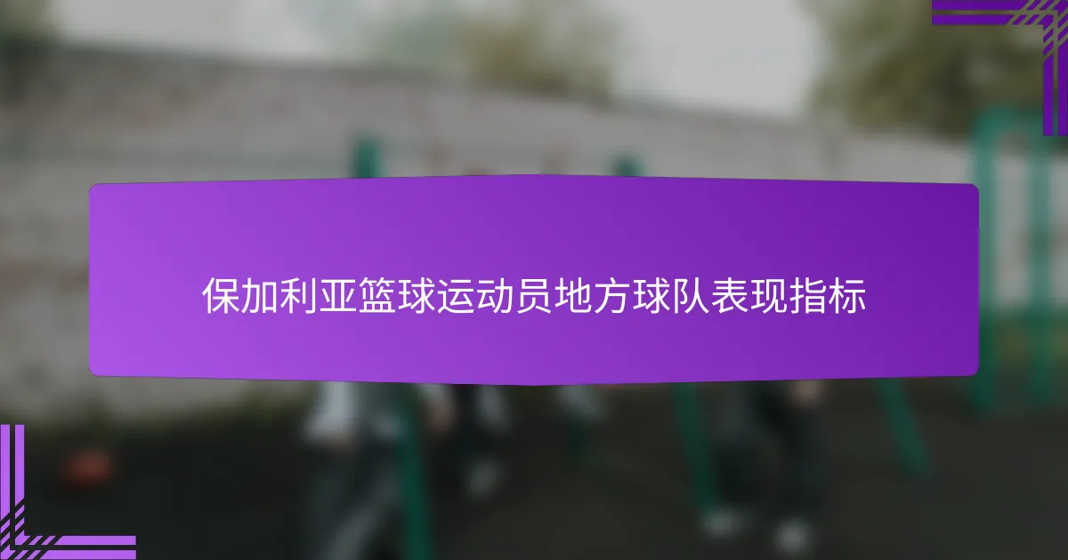 在保加利亚篮球中,关键绩效指标对于评估球员在场上的有效性至关重要。这些指标包括得分、防守、篮板和组织进攻,为教练和球队提供了宝贵的见解。通过利用视频分析和统计工具,本地球队可以更好地理解球员的贡献,最终提升整体表现。