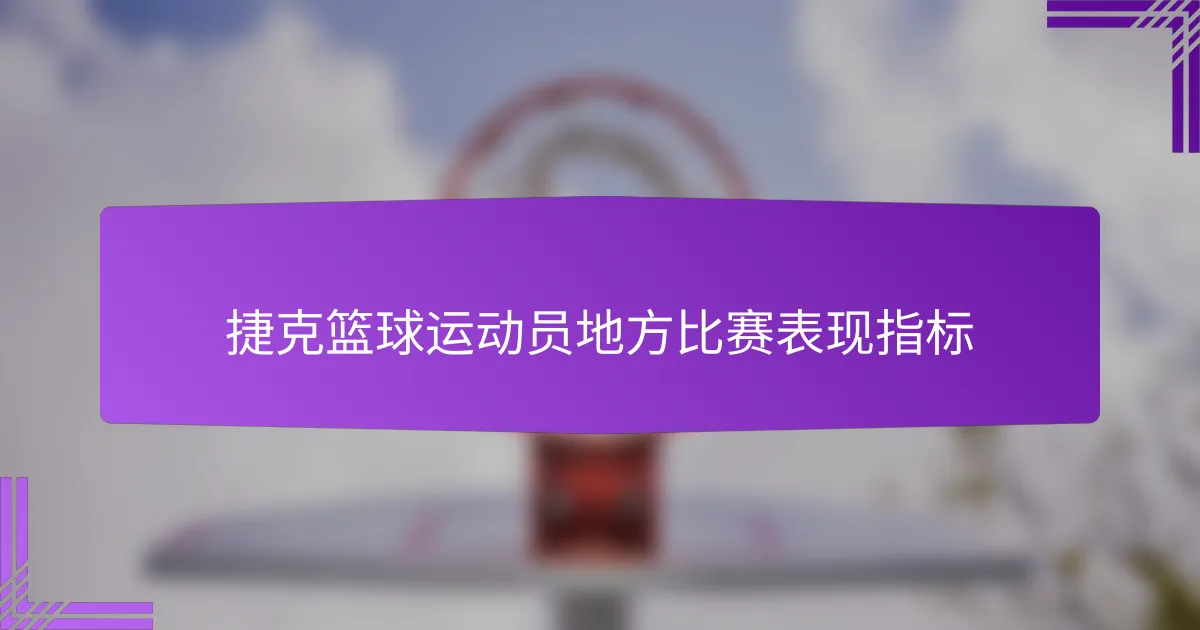 捷克篮球运动员在地方比赛中的关键绩效指标是什么?