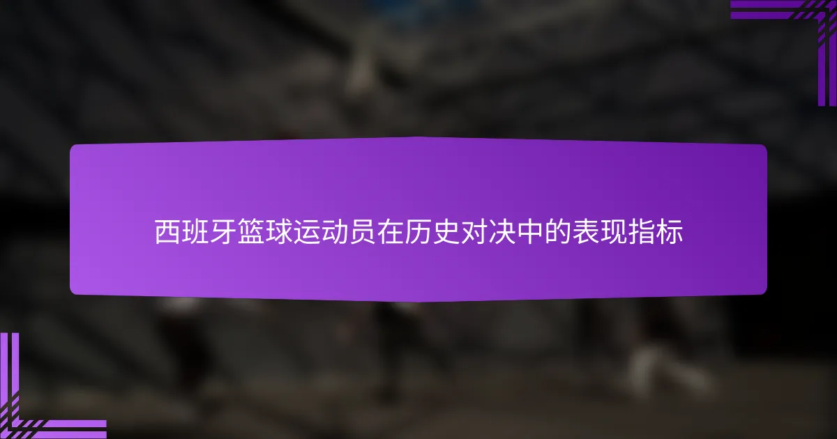 表现指标最高的西班牙篮球运动员通常因其得分效率、防守能力和助攻失误比而受到认可。这些指标突显了他们对比赛的贡献以及在历史对阵中的有效性。