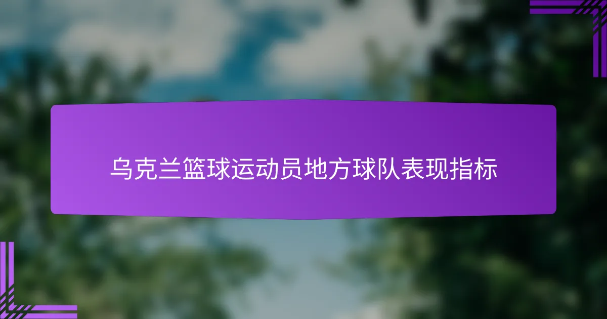 对于乌克兰的地方篮球球队,关键表现指标包括得分效率、防守能力和球员多样性。这些指标帮助教练和管理层评估球员的贡献,并制定适合乌克兰篮球竞争环境的有效比赛策略。