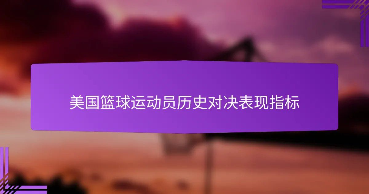 美国篮球运动员在历史对决中的关键表现指标,如每场得分、篮板和助攻,对于评估个人贡献和整体效果至关重要。这些指标受到多种因素的影响,包括对手的实力和比赛的时代,这为理解球员表现提供了背景。此外,这些统计数据的准确性可能会受到样本大小和比赛条件的影响,因此在评估球员表现时,考虑这些因素是必不可少的。